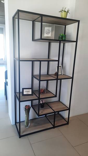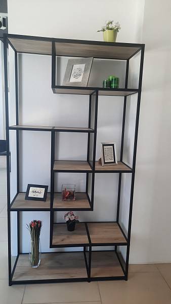 Стеллаж на металлокаркасе. Выполнен по индивидуальному заказу.
