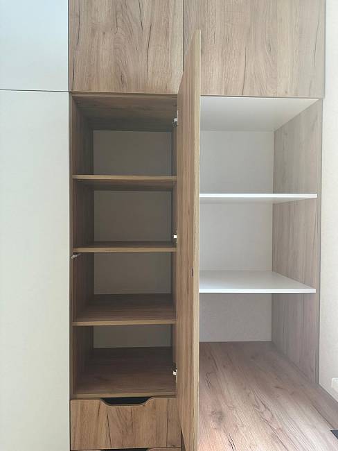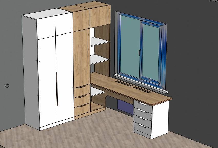 Для детской комнаты необходим комплект мебели: распашной шкаф, зона для хранения и рабочая зона