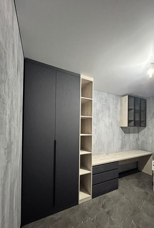 - Фасады: МДФ 19мм с интегрированной ручкой / фрезеровкой «Волна» в пленке «Монолит Мун».