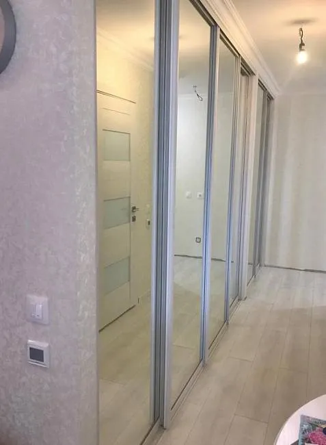 цвет мебели подбирали к общему интерьеру, к цвету стен, пола и дверей. Всё сделано в светлых оттенках. Хотелось сохранить пространство и приумножить его. Поэтому двери решили делать полностью зеркальные. Корпус мебели - ЛДСП Бодега Светлая, один из самых светлых оттенков, после белого. Профиль дверей-купе в цвете Берёза, максимально близкий по цвету к ЛДСП.