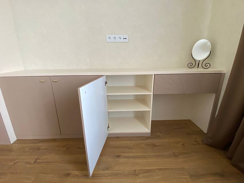тумбами и туалетным столиком – единым гарнитуром.